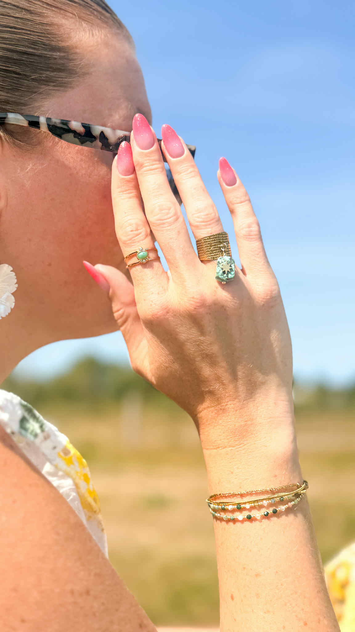 Alliant éclat doré et charme minéral, les bagues Calista incarnent la beauté brute des pierres naturelles sublimée par un design raffiné.