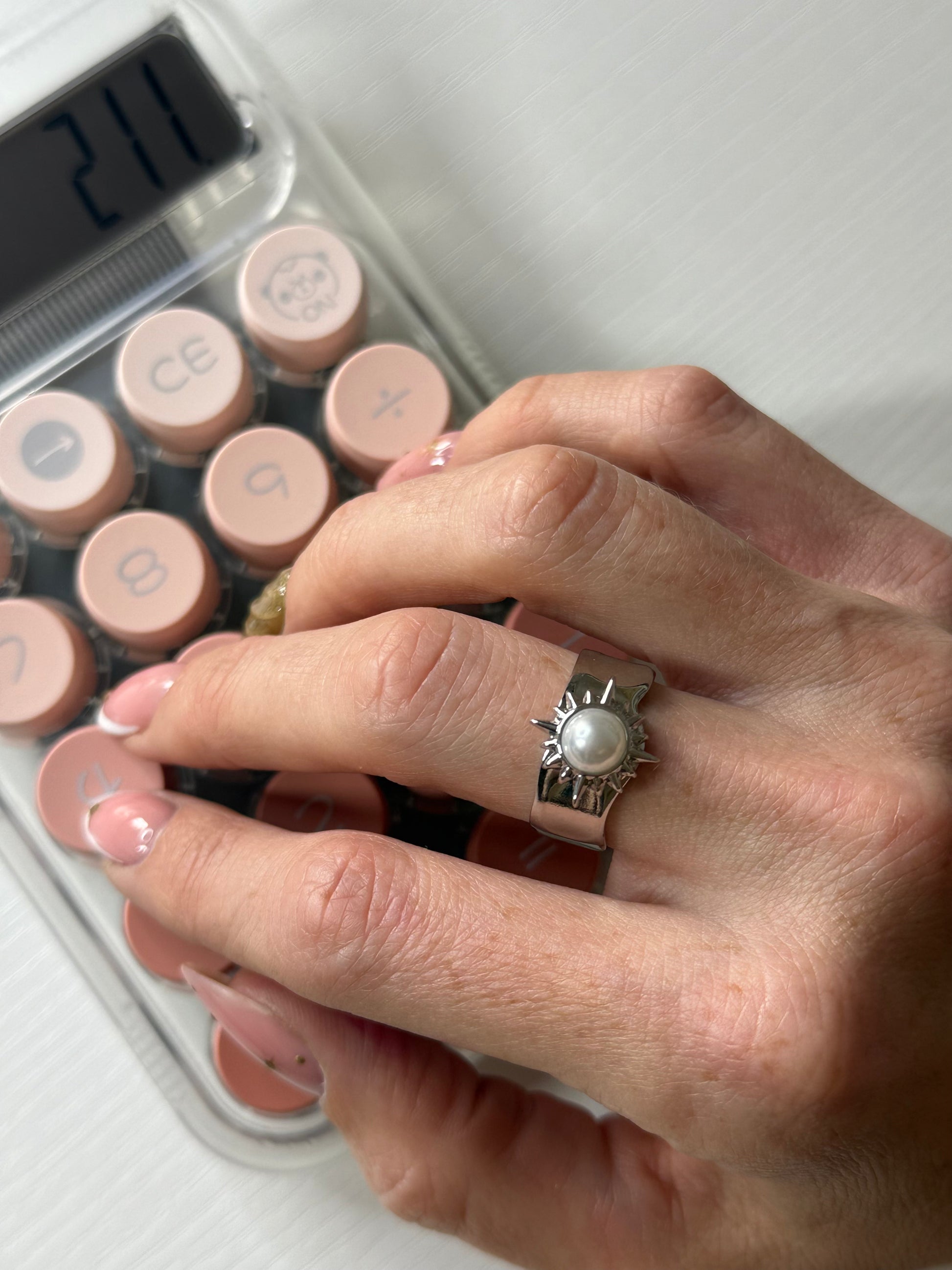 Son anneau structuré met en valeur une sublime pierre de nacre, sublimée par un motif solaire délicatement gravé. Cette bague joue sur les contrastes entre force et délicatesse, offrant une touche lumineuse et audacieuse à votre style. Solène est ajustable, mais sa structure robuste lui permet de rester parfaitement en place une fois portée.