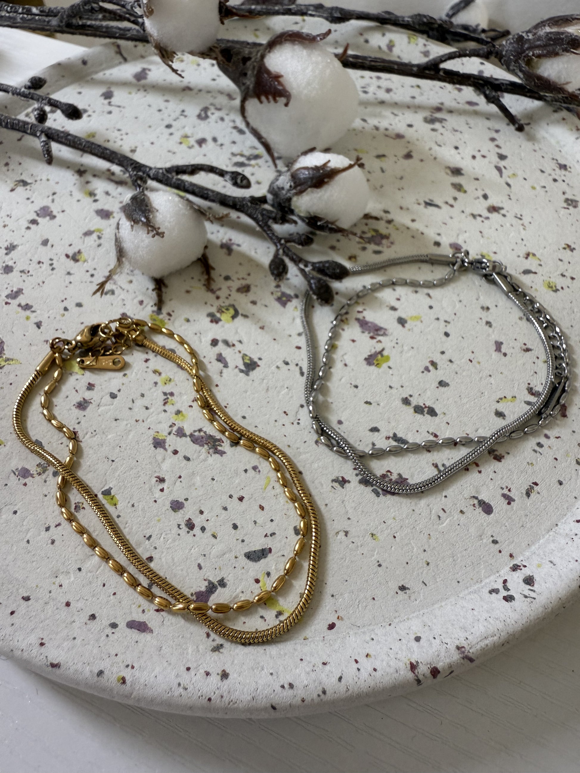 Un jeu de textures et de brillance! Le bracelet Lina associe deux chaînes pour un effet tout en contraste et en finesse.