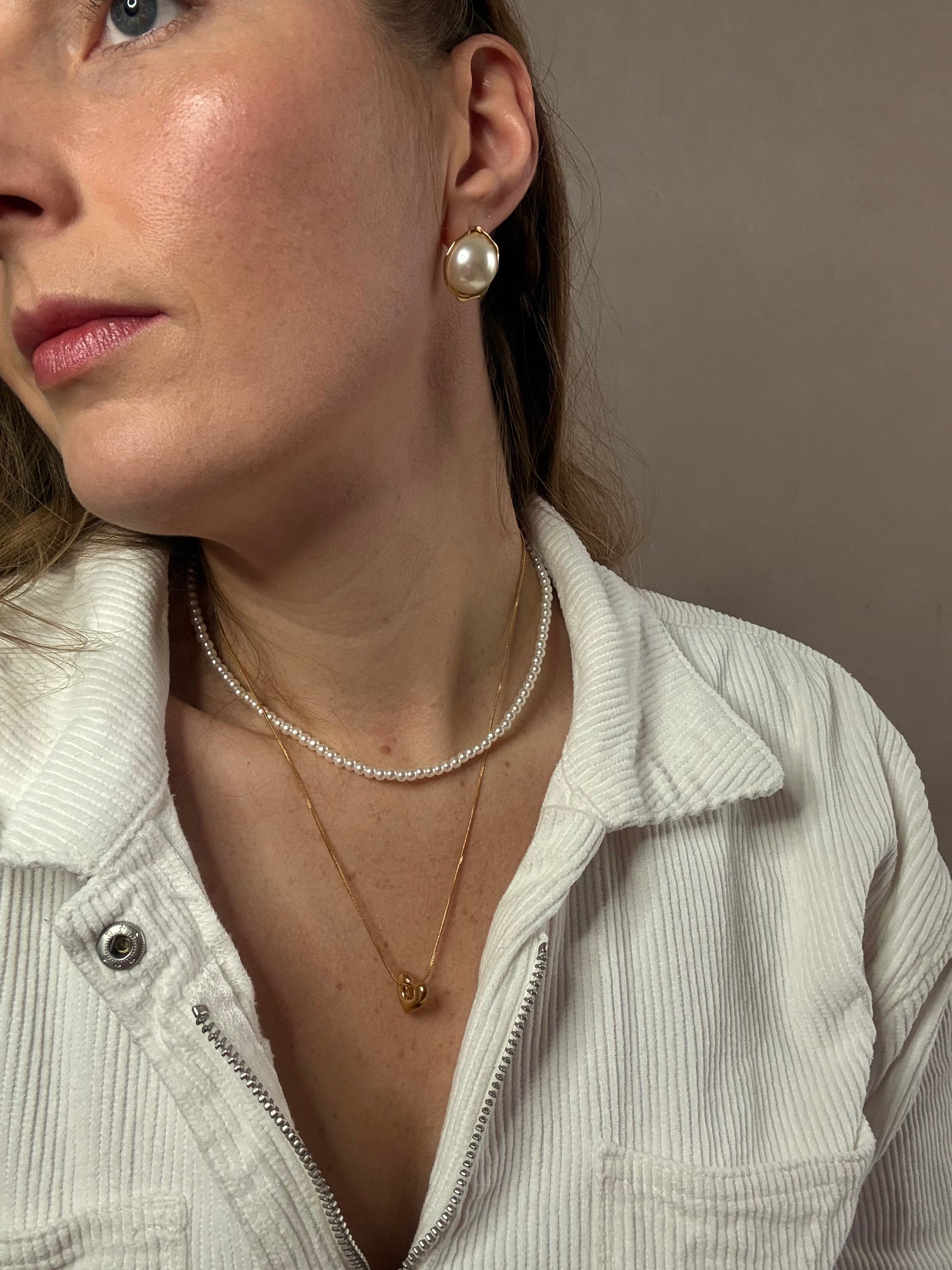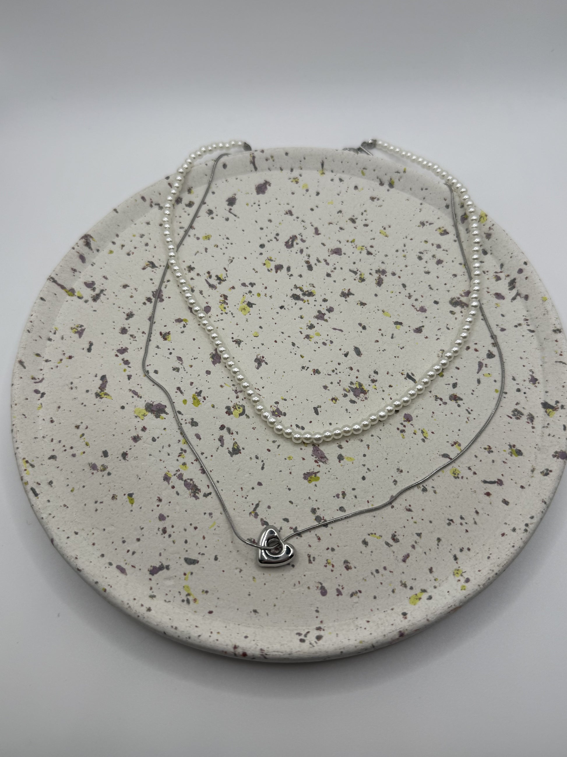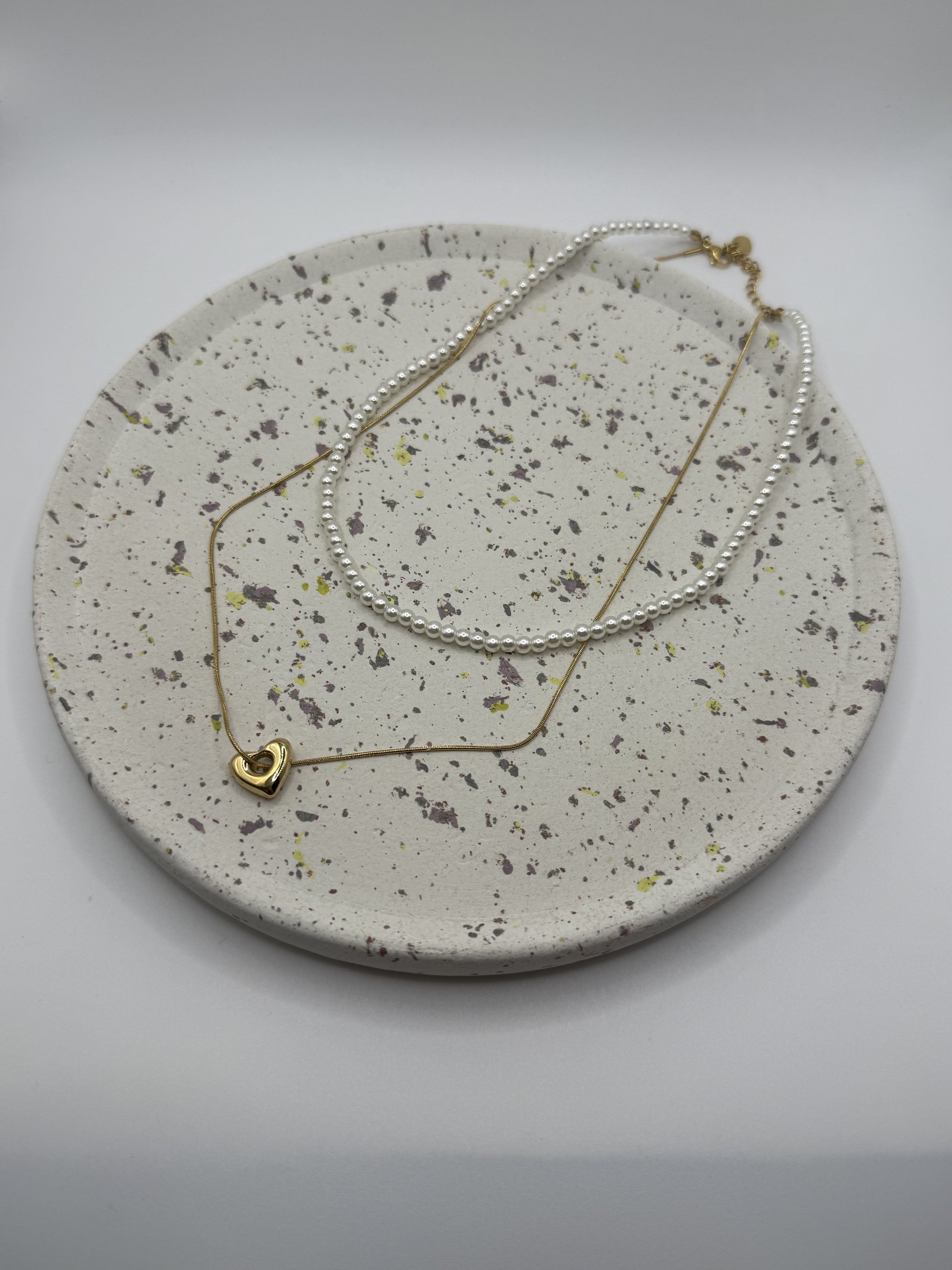 Associant une fine rangée de perles à une chaîne ornée d'un pendentif en forme de coeur, il joue sur les contrastes pour un rendu sophistiqué. Disponible en version dorée et argentée, il s'adapte à toutes les envies et sublime chaque tenue avec élégance.
