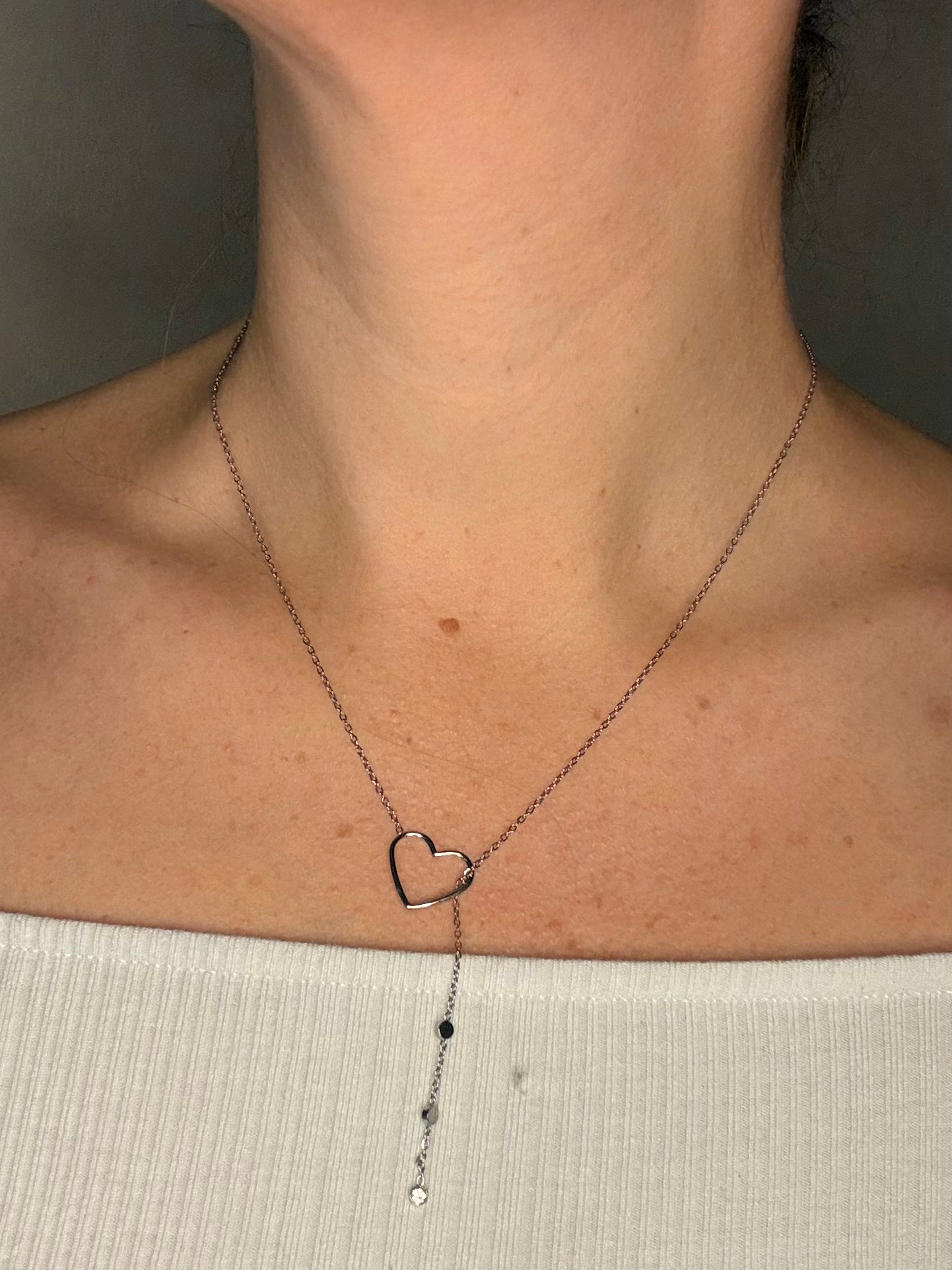 Son pendentif en forme de coeur ajouré, délicatement orné de petit strass scintillants, évoque l'amour sous toutes ses formes, qu'il s'agisse d'un amour romantique, familial ou personnel. Sa chaîne fine et discrète apporte une touche subtile, idéale pour un style minimaliste ou en superposition avec d'autres colliers. Léger et intemporel, il s'adapte à toutes les occasions et accompagne chaque tenue avec douceur.