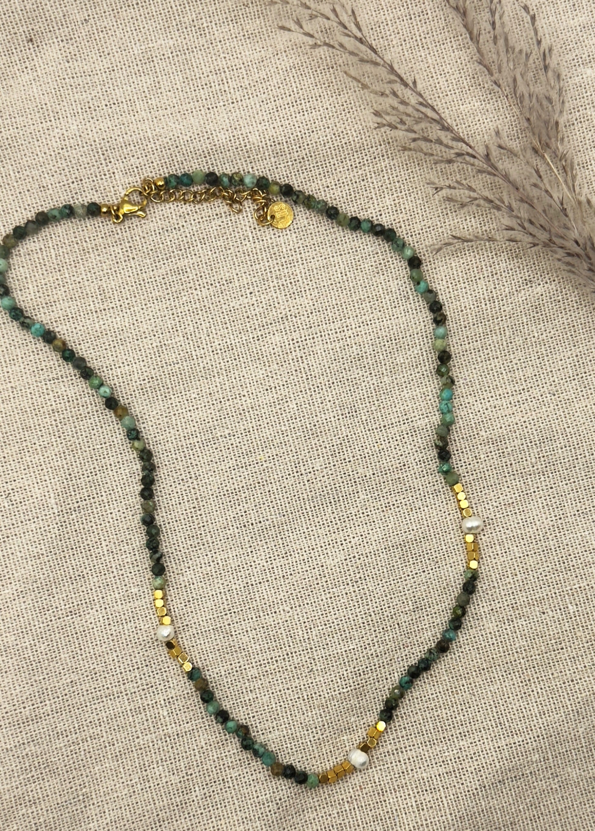 Pierres naturelles, perles d'eau douce et acier inoxydable doré (résistant à l'eau et au ternissement).