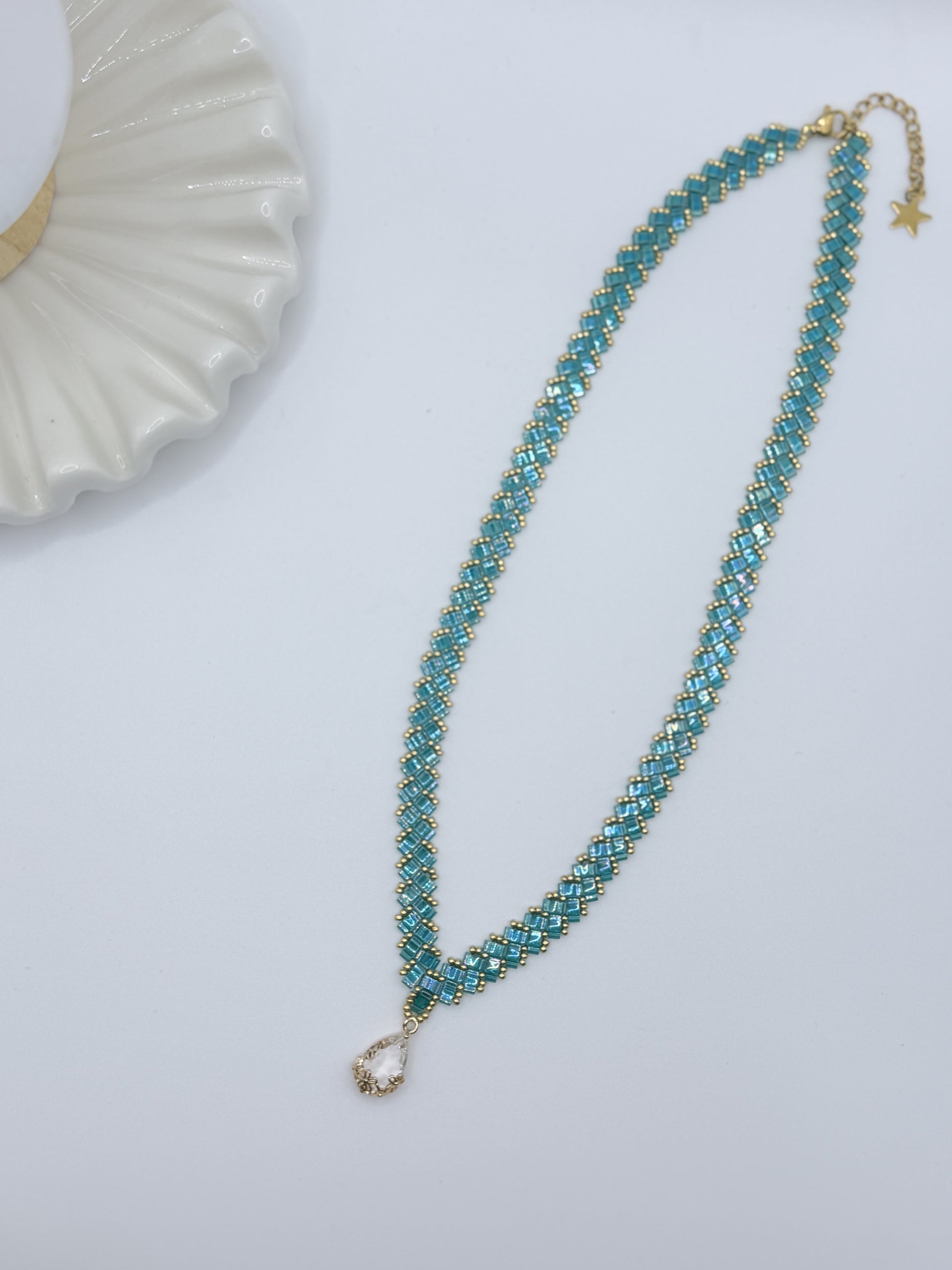 Ajoute une touche de finesse et d'authenticité à ton style avec Émeraude, un collier délicat et entièrement fait à la main.