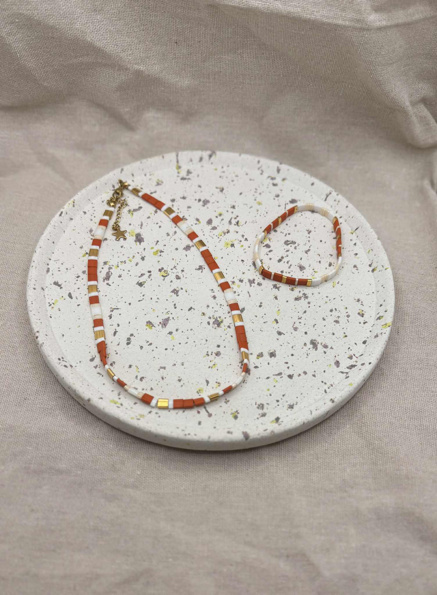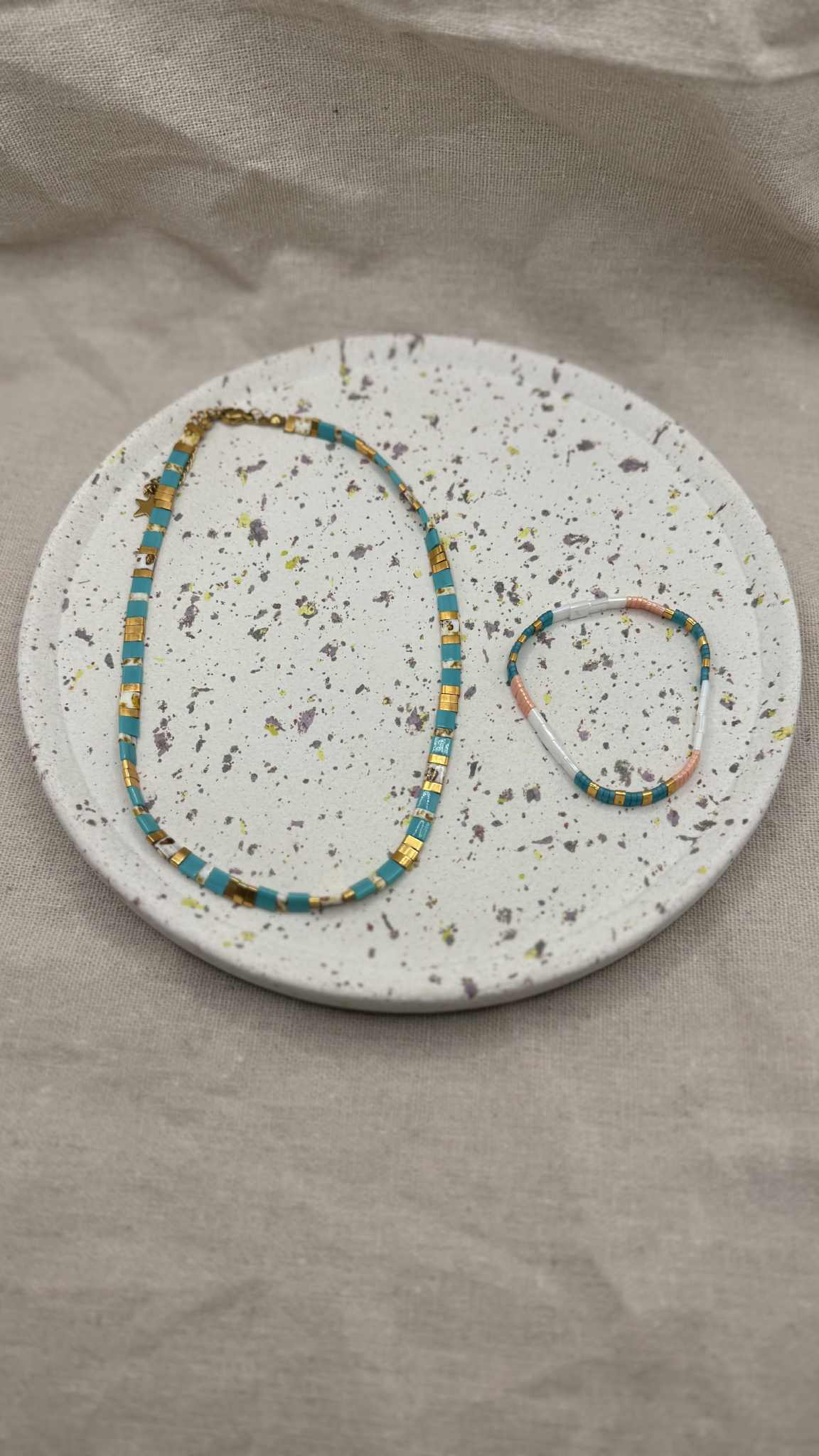 (Bracelet élastique +collier ras-de-cou en perles Miyuki - vendu en duo).