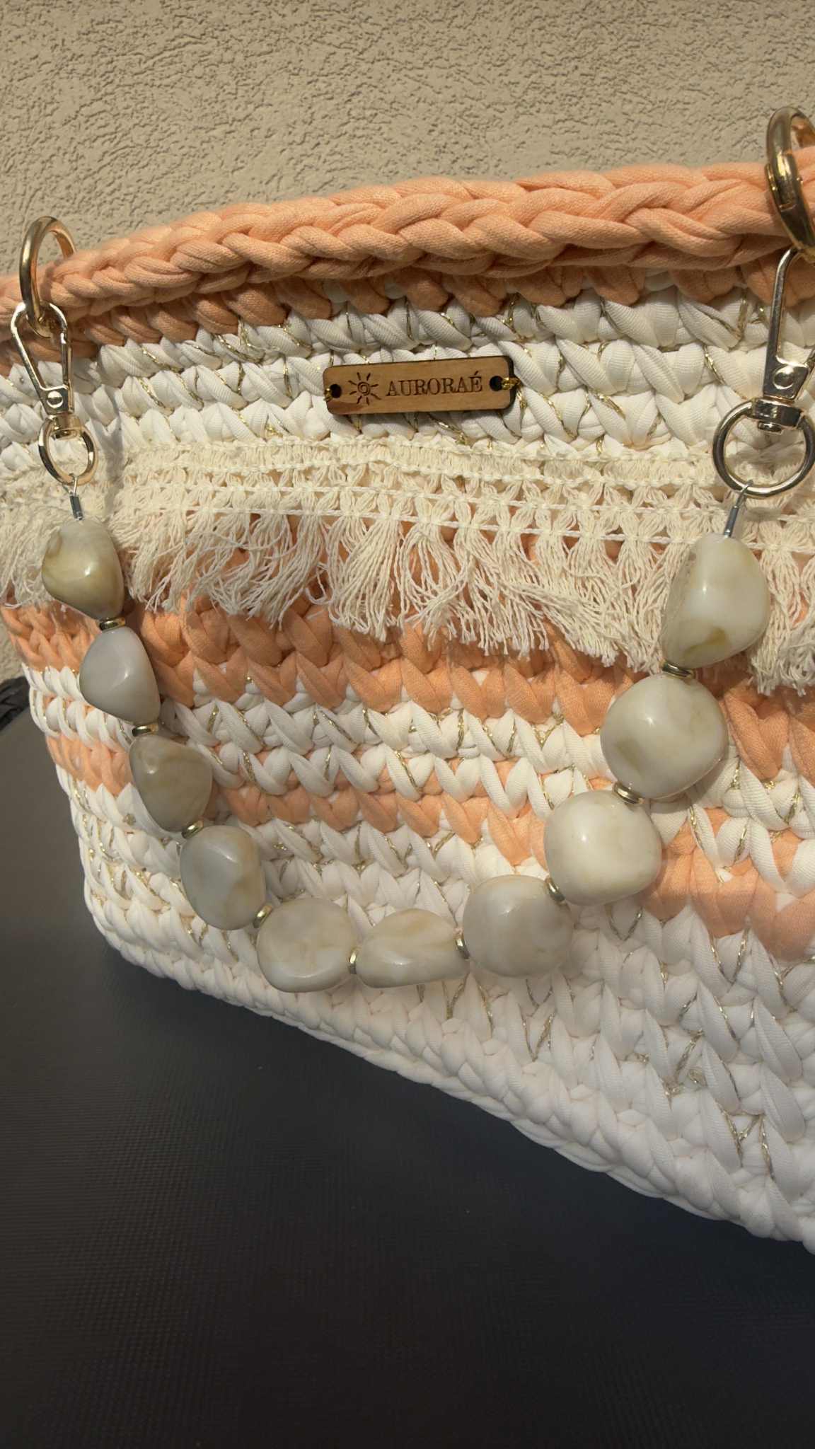 Avec se teintes crème et pêche, son tressage soigné et sa frange bohème, il respire la décontracton chic. Sa anse amovible en perle oversize, façon nacre, apporte une touche de féminité raffinée qui fait toute la différence.